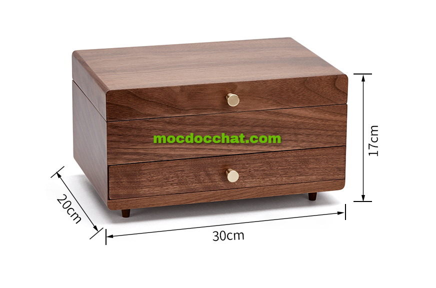 Được làm từ gỗ óc chó cao cấp với độ bền và màu sắc đẹp. Mẫu hộp đựng trang sức này với thiết kế tối giản, không cầu kì, mộc mạc đơn giản nhưng vẫn sang trọng nhã nhặn.